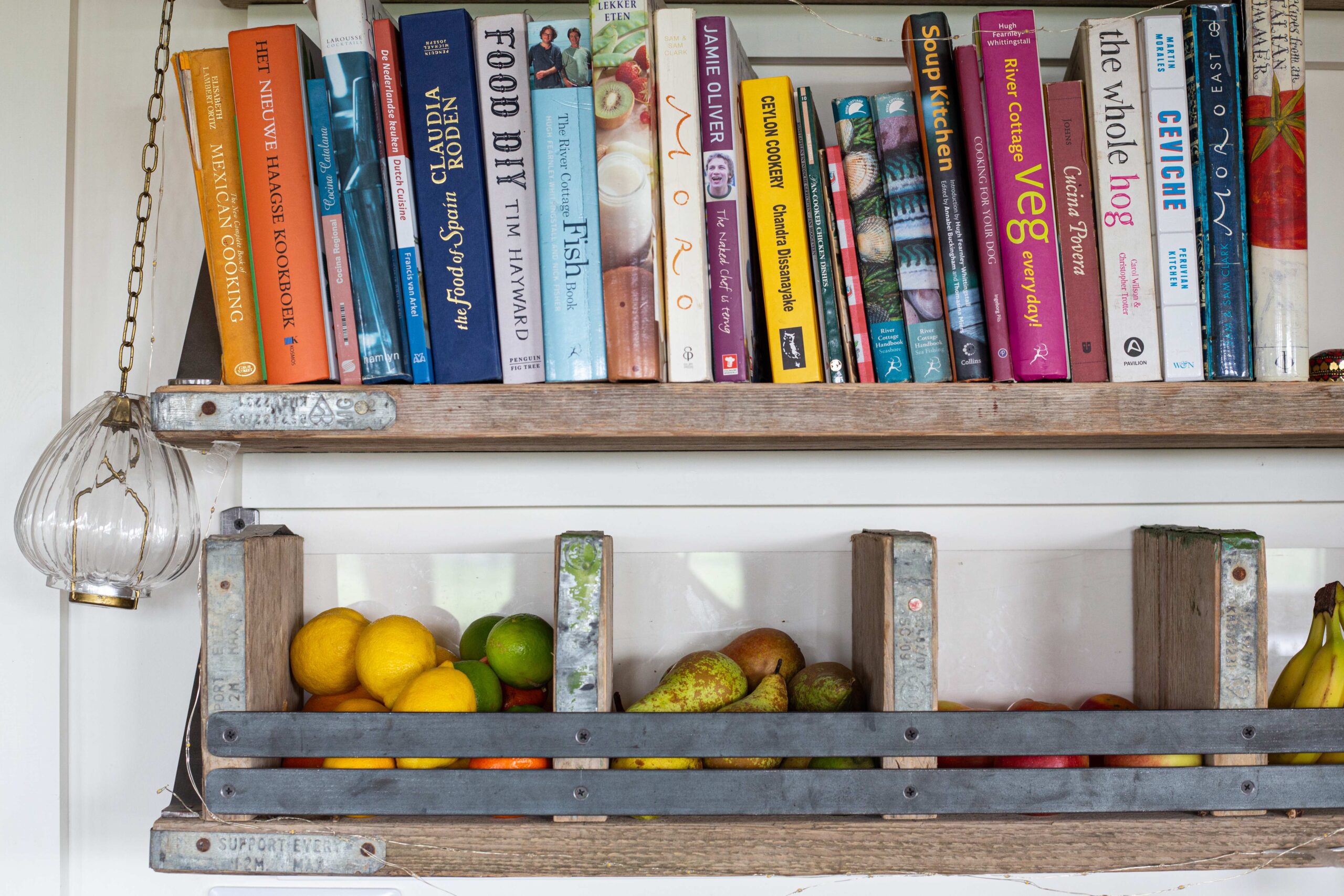Here we have used old scaffolding planks to make shelving and a fruit basket, but anything can be made to fit any situation.